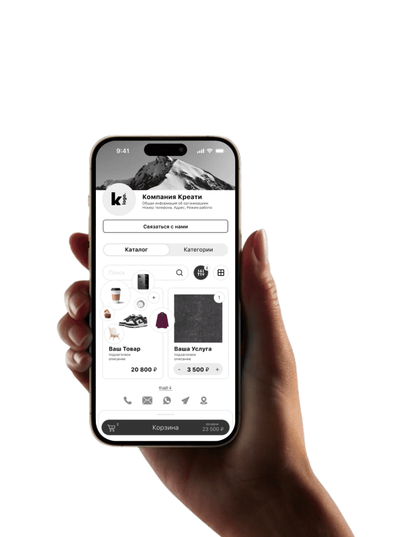 Каталог — это ваш быстрый старт или удобное расширение. Неважно, с чего вы начинаете — главное начать. Покажите свой бизнес миру уже сегодня.